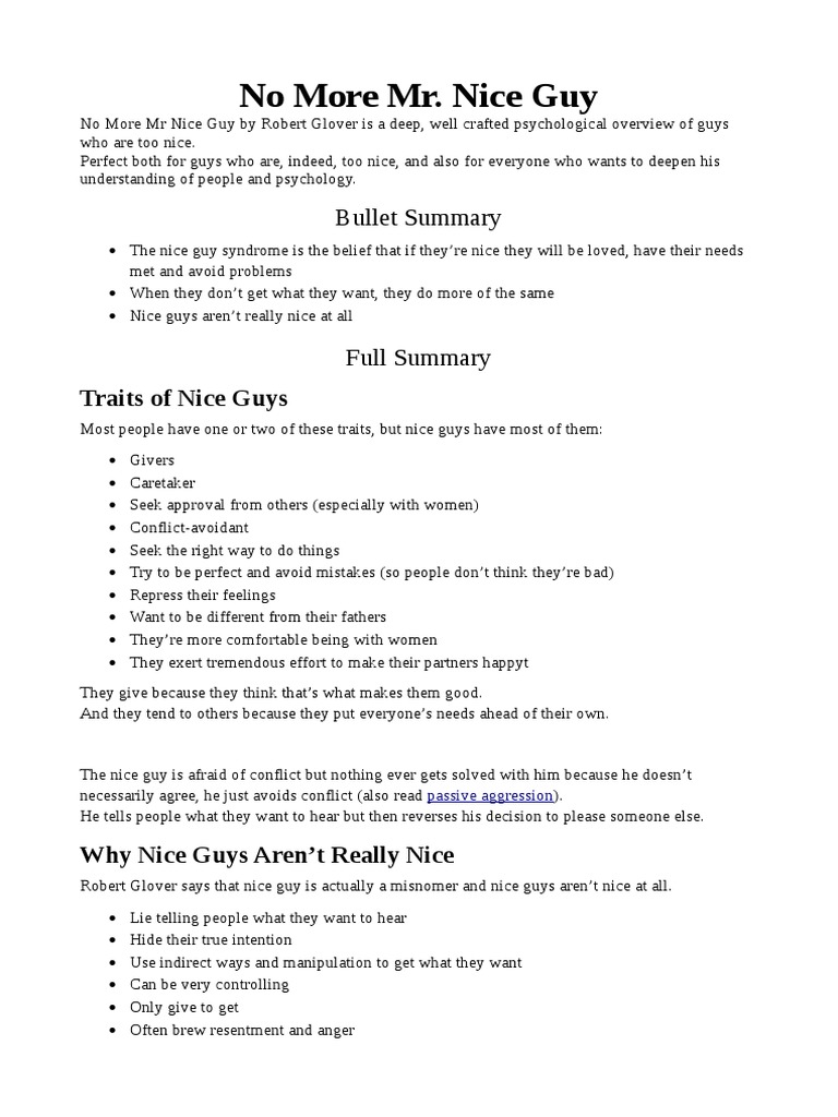 No More Mr Nice Guy Cheatsheet Pdf Psychology Behavioural Sciences