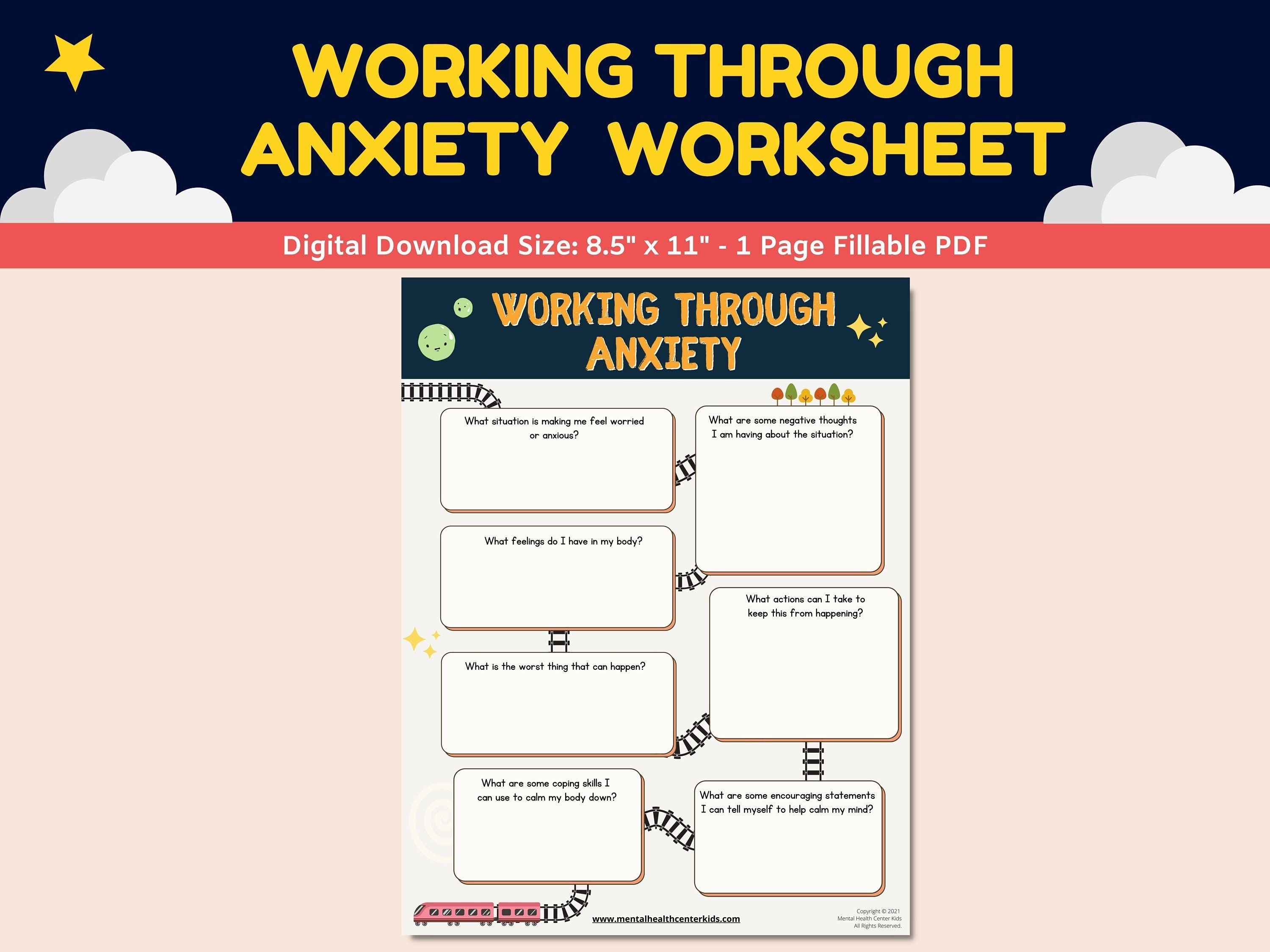 Anxiety Worksheet Kids Children Fillable Pdf Therapy Worksheet Etsy